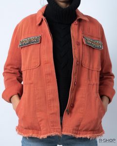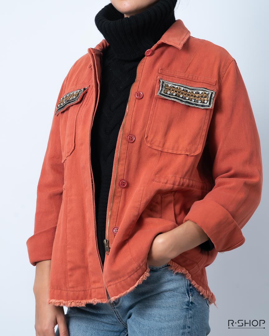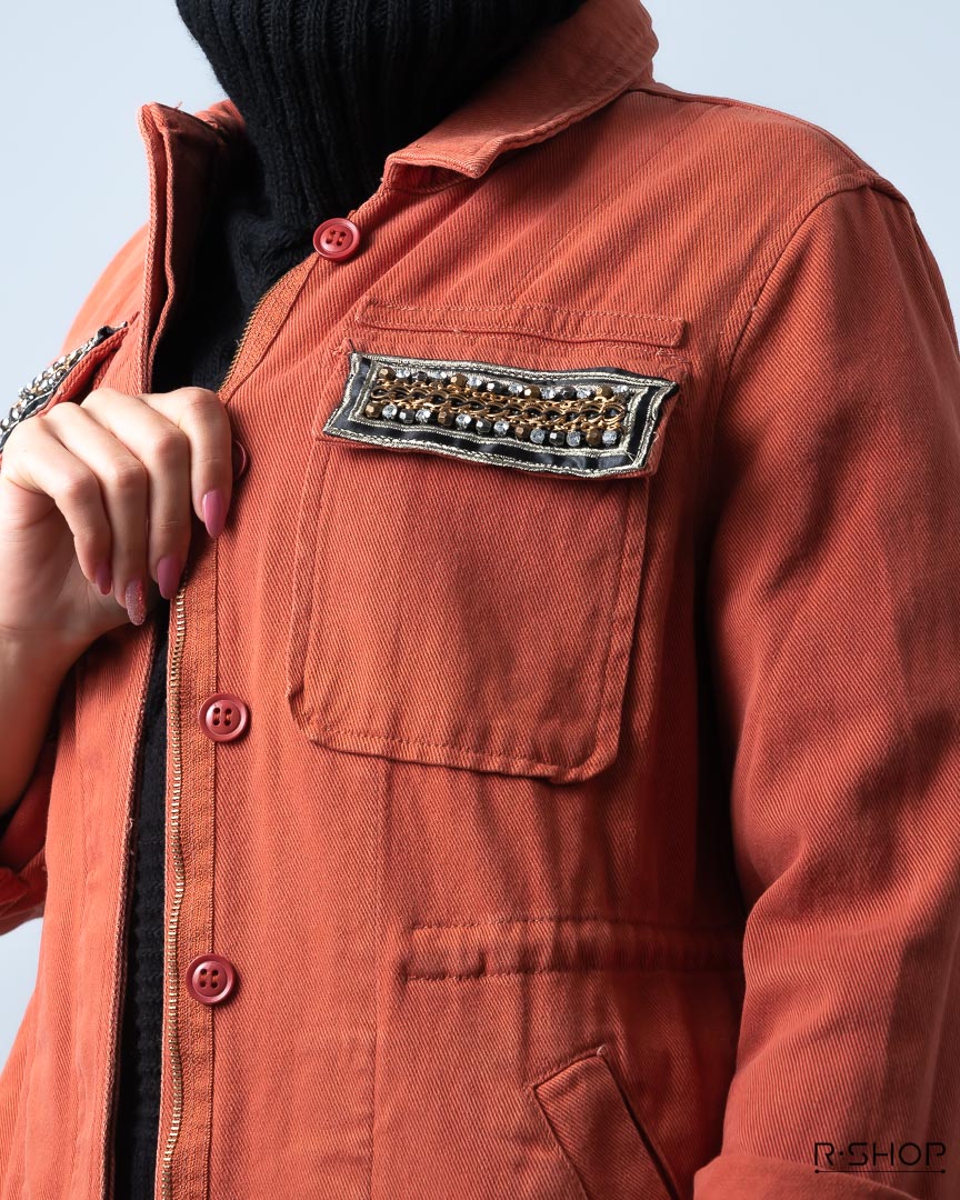 Chaqueta de mujer color Terracota con Bolsillos Decorados.